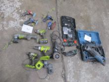 Including: (4) Ryobi Cordless Power Tools With (1) Battery & Charger. (2) Depstech DM200A 240 Volt Rotary Tools. (4) Assorted Air Tools. (1) Erbauer ERS1100 240 Volt Reciprocating Saw. (1) Makita Angle Grinder 24...